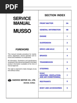 Actyon family korando korando c200 korando c205 korando c206 korando c210 kyron musso musso sports rexton rodius turismo. The following chart shows the relationship between the input and the output in huber egr control unit. Ssangyong musso diesel and petrol 1993 2005 workshop manual this musso workshop manual is the most comprehensive workshop manual available fully bookmarked for easy navigation. Also see for ssangyong musso. Schematic and routing diagrams. Related manuals for ssangyong musso.